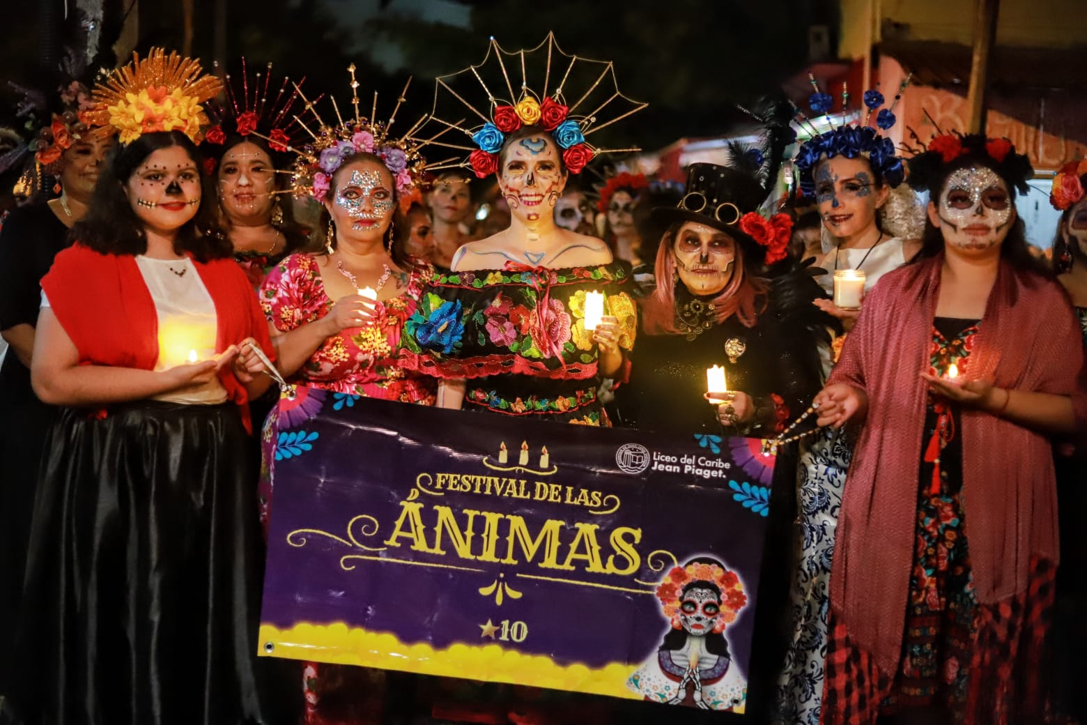 La población y autoridades, disfrutaron de bailables, como la tradicional jarana yucateca, interpretada por jóvenes de la población, un desfile de catrinas y un recorrido por los altares que se instalaron en el campo de béisbol.