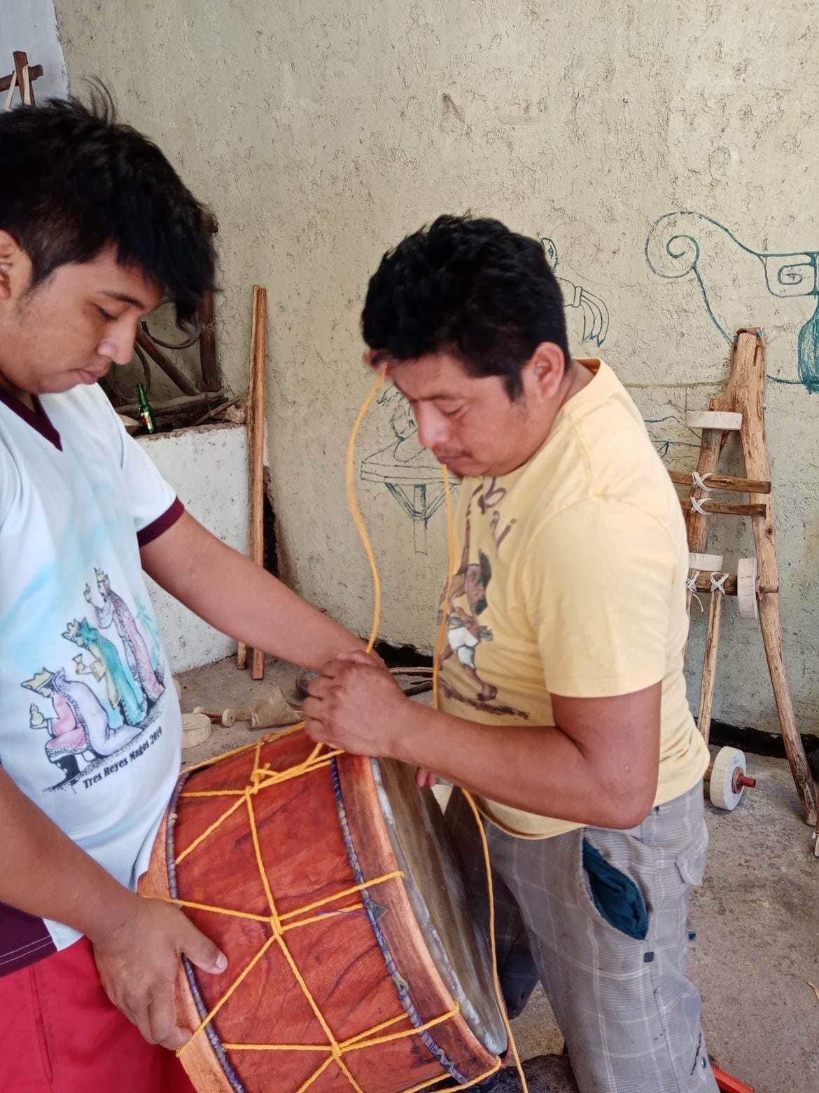 La destreza de José Alberto en el arte de realizar instrumentos de su grupo Kilbal Cháak le ha valido para realizar los instrumentos que ahora pertenece a una nueva generación de músicos de la comunidad de XPichil.