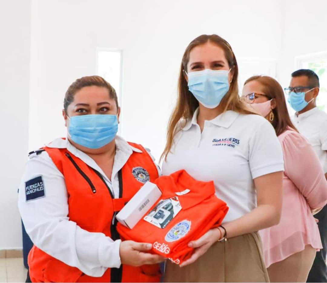Isla Mujeres. Para fortalecer y dignificar el trabajo que realiza el personal del Grupo Especializado en la Atención de la Violencia Familiar y de Género (GEAVIG), la presidente municipal de Isla Mujeres, Atenea Gómez Ricalde, entregó uniformes y equipos nuevos a sus elementos.