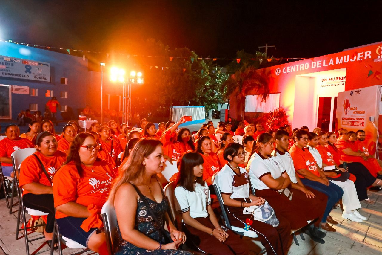 ISLA MUJERES.- Como parte del amplio programa de 16 Días de Activismo para la Eliminación de la Violencia contra la Mujer, el Gobierno que encabeza la alcaldesa Atenea Gómez Ricalde, realizó el encendido de las Luces Naranja en el Centro de la Mujer de la colonia La Gloria en la zona insular.