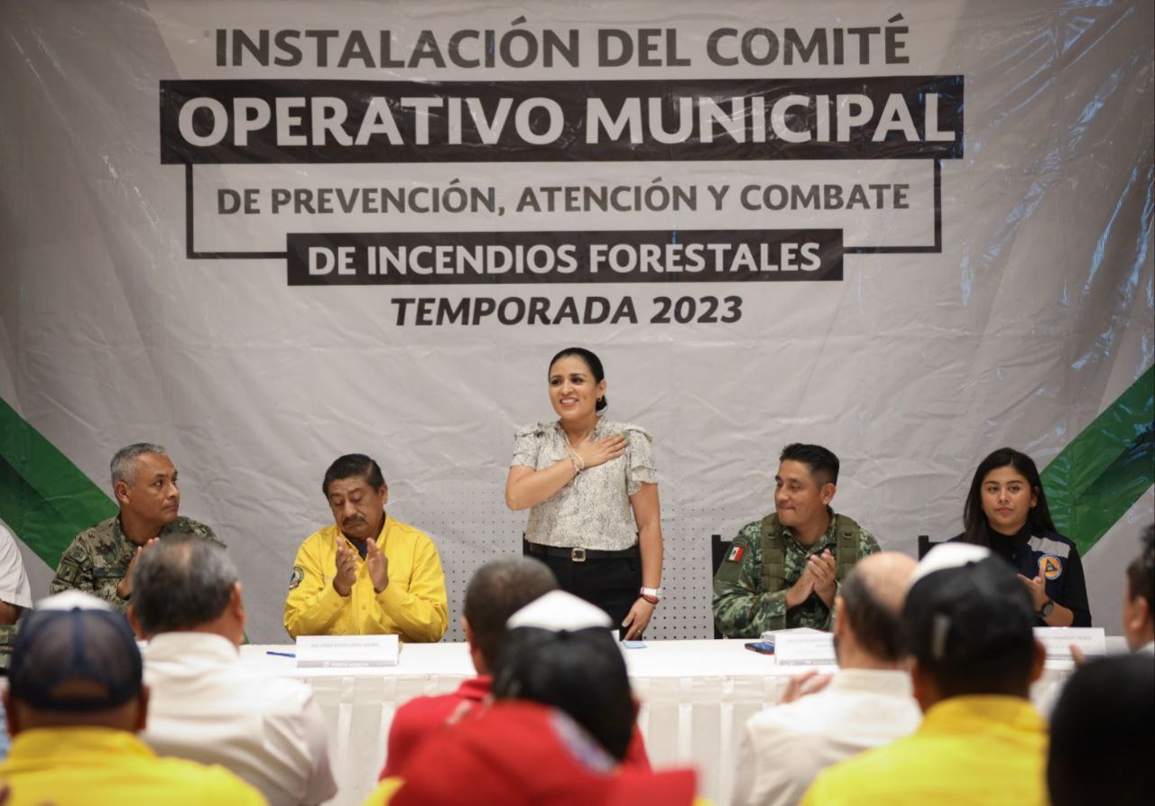“En nuestro municipio, la temporada es particularmente peligrosa por los macizos forestales de gran dimensión e importancia que tenemos, además hay que recordar que abril y mayo se consideran los meses más críticos por la época de estiaje”, refirió en el evento en el que estuvo acompañada por el secretario general del Ayuntamiento, José de Jesús Espinosa Payán, y el coordinador de Protección Civil, Guillermo Morales López.