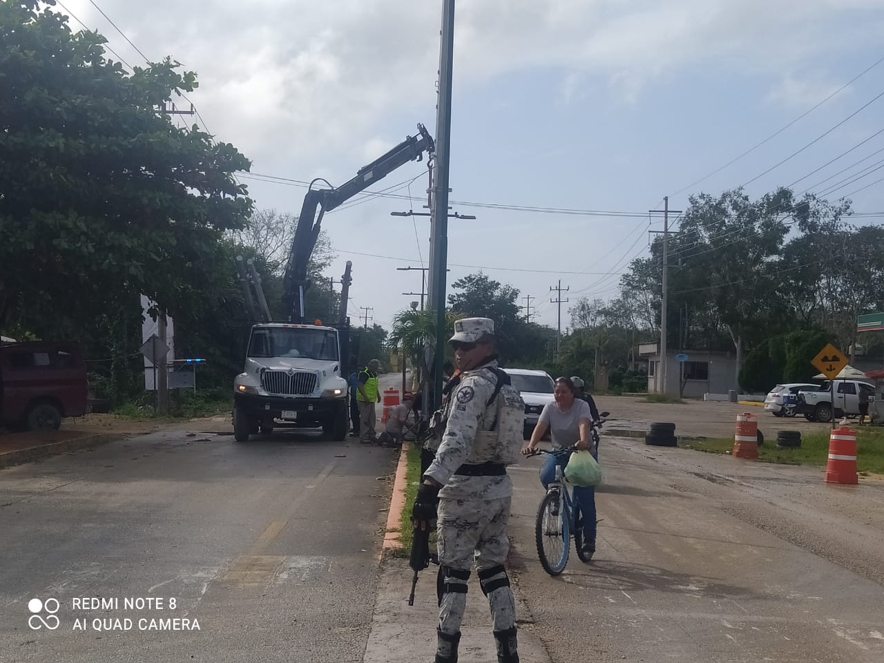 Ayer una empresa con el apoyo de elementos de seguridad pública y de la Guardia Nacional, realizaron trabajos de instalación de los postes a la salida de Kantunilkín y luego realizaron trabajos similares en pleno centro de la ciudad y otro a la salida por el puerto de Chiquilá.