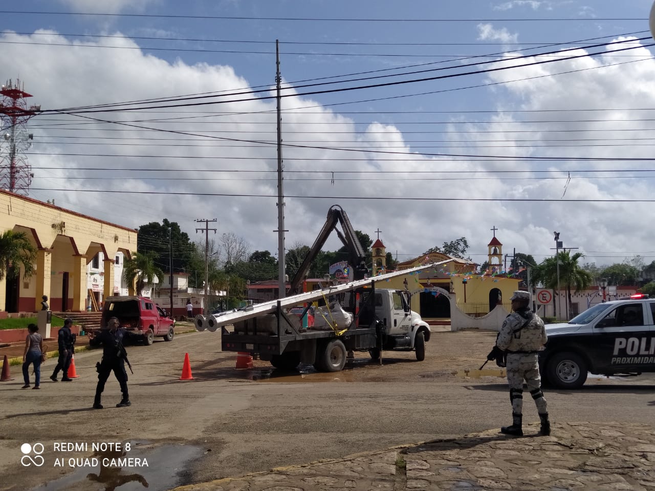 Ayer una empresa con el apoyo de elementos de seguridad pública y de la Guardia Nacional, realizaron trabajos de instalación de los postes a la salida de Kantunilkín y luego realizaron trabajos similares en pleno centro de la ciudad y otro a la salida por el puerto de Chiquilá.