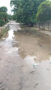 Otro de los problemas que se dan en las calles del centro del pueblo es la falta de pozos de absorción y cuando llueve se forman charcos de agua que obstaculiza la entrada de alumnos a la escuela
