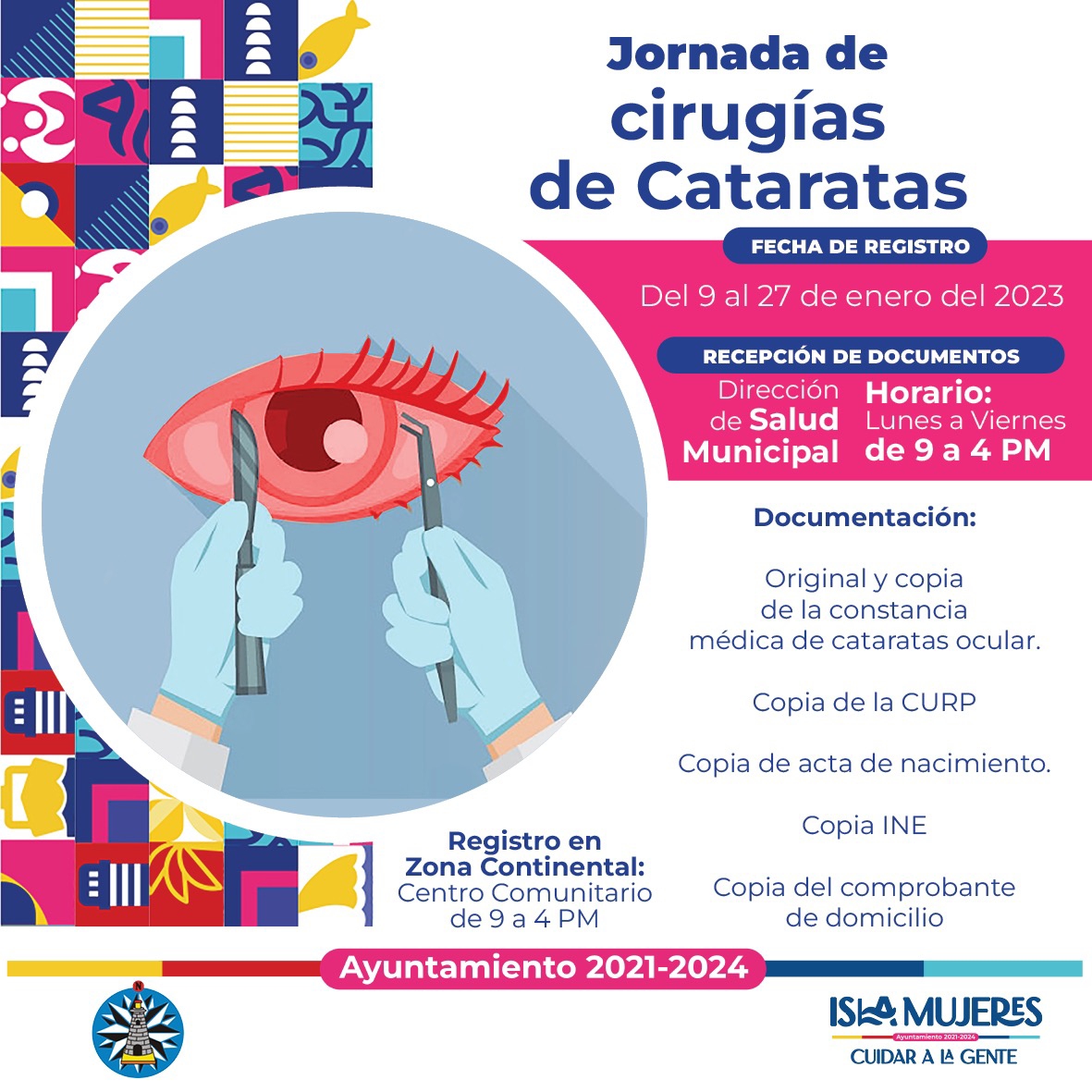 Al respecto, la directora de Salud de Isla Mujeres, Teresa Gómez Herrera, dio a conocer que ya inició el registro para aquellas personas que estén interesadas en realizarse la cirugía sin costo, el cual estará abierto hasta el próximo 27 de enero. “Las inscripciones son en las oficinas de la Dirección de Salud Municipal, al interior del Centro Comunitario tanto de la zona insular como Continental, en un horario de lunes a viernes de nueve de la mañana a cuatro de la tarde”, refirió Gómez Herrera.