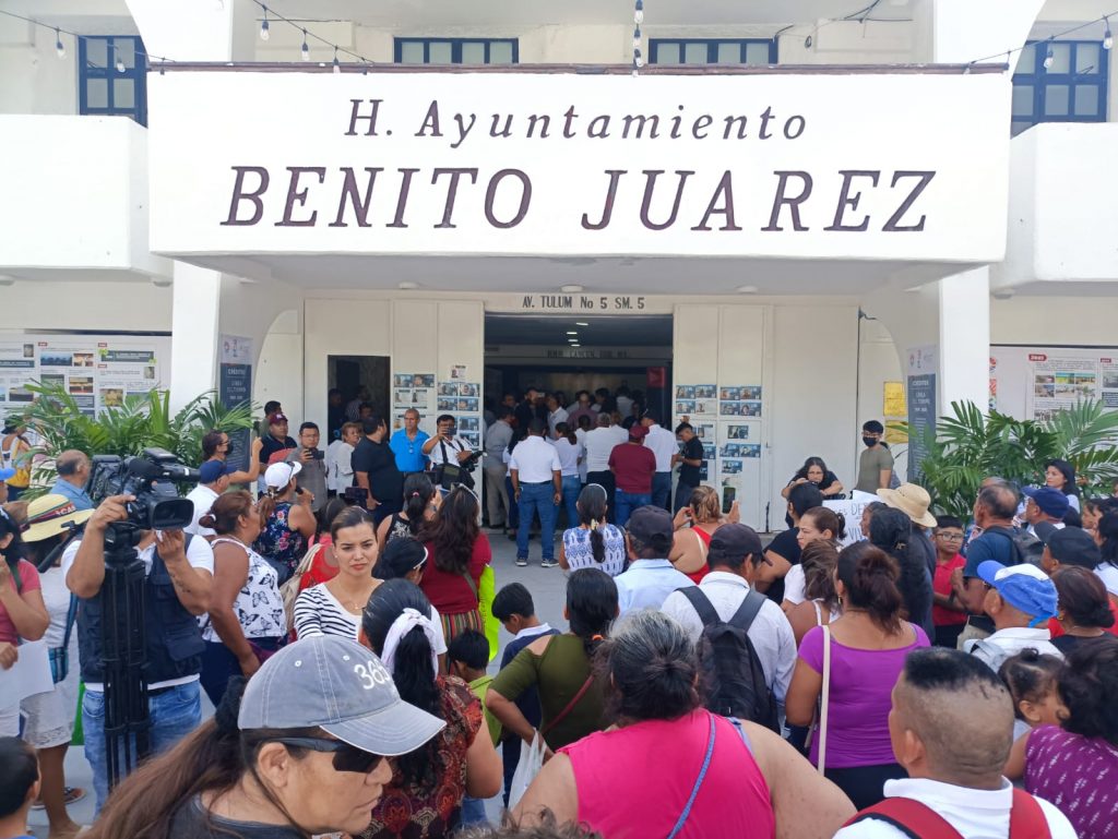 Cancún.- Alrededor de 80 habitantes de colonias irregulares de Cancún irrumpieron hoy en un evento público que se realizó en el Palacio Municipal de Cancún, para acusar a las autoridades municipales de hacer “oídos sordos” a su exigencia de ser regularizados.