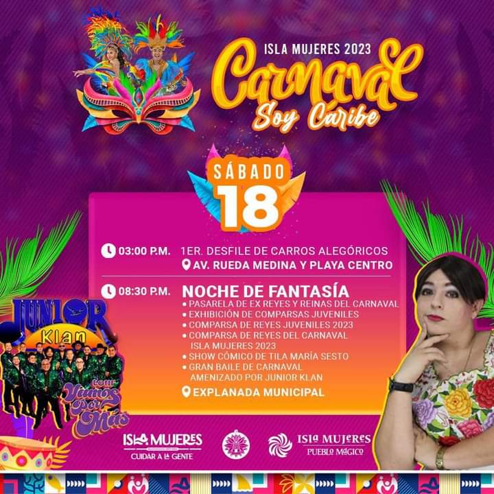 Isla Mujeres, Quintana Roo.- Como parte del extenso programa de actividades del Carnaval “Soy Caribe 2023” del 4 al 21 de febrero, este sábado 18, se llevará a cabo el primer Desfile de Carros Alegóricos sobre la avenida Rueda Medina y Playa Centro en la Zona Insular de Isla Mujeres a partir de las tres de la tarde, por lo que la alcaldesa, Atenea Gómez Ricalde, invitó a la comunidad isleña y a los miles de turistas que están en la isla a disfrutar de esta gran fiesta de tradición y color que une a los isleños.
