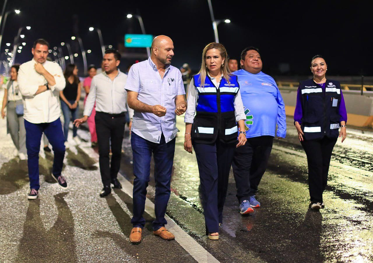 “Se colocaron 476 lámparas nuevas sobre el puente a desnivel, entre la 11 sur y la Avenida Solidaridad, las lámparas estaban dañadas o fundidas y la iluminación era muy mal” explicó afirmó Lili Campos. Añadió que con estas acciones se brinda mayor seguridad vial, se reducen y previenen accidentes.