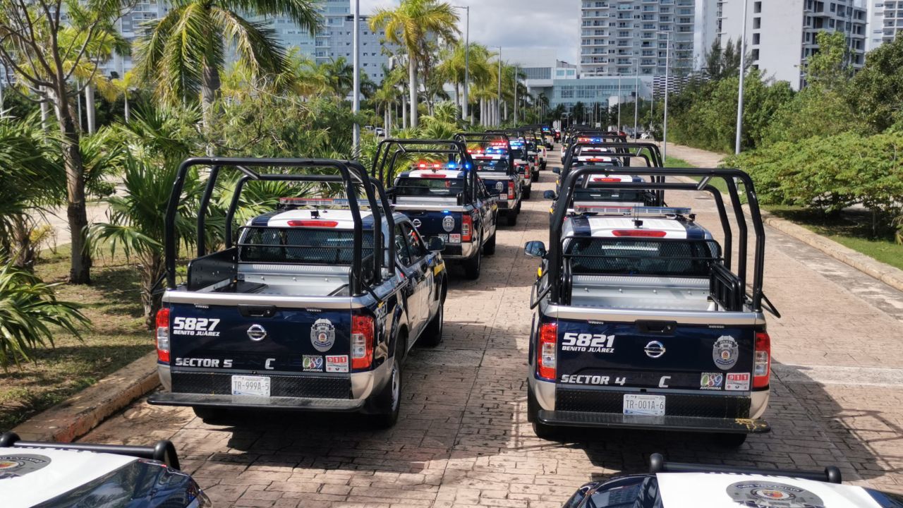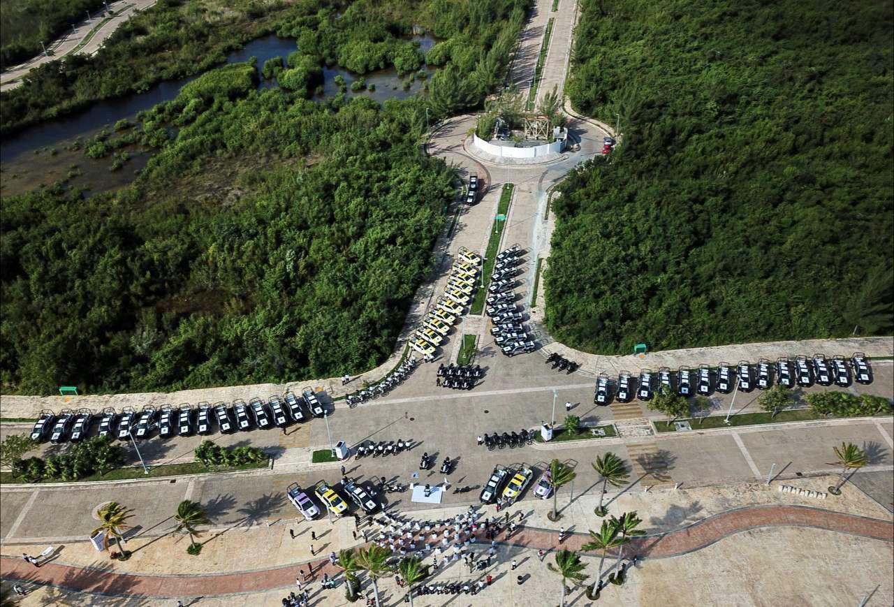 CANCÚN.- Autoridades de los tres órdenes de gobierno presenciaron la entrega de 94 unidades vehiculares que servirán para fortalecer el parque vehicular de la Secretaría Municipal de Seguridad Pública y Tránsito de Benito Juárez, y de esta forma, reforzar la seguridad en el municipio.