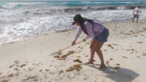 Agregó que en esta playa se han recolectada 29 toneladas en lo que va del año, y actualmente cerca de la línea costera se encuentra una “marcha de sargazo” que está por recalar.