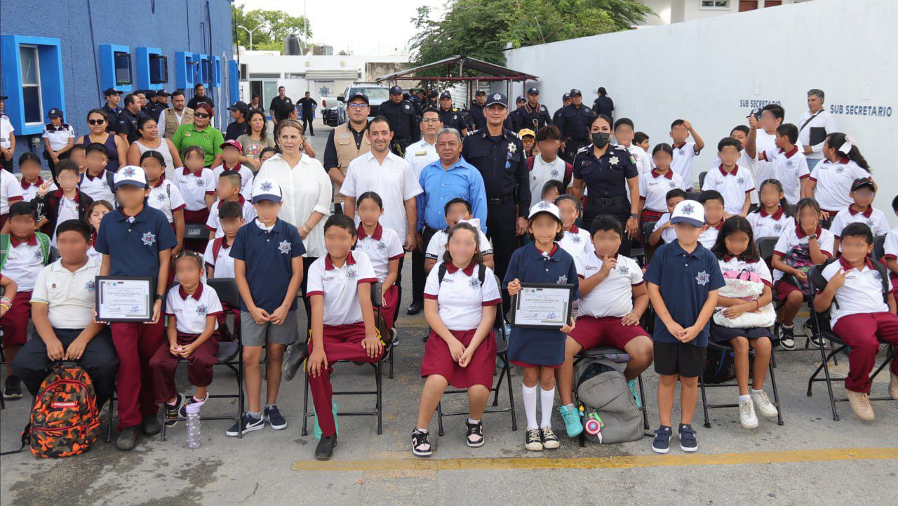 “Ser policía es mucho más que hacer frente a la delincuencia, es mucho más que prevenir y combatir delitos; ser policía es un honor y un orgullo, son héroes sin capa que de día y de noche trabajan y se arriesgan, cumpliendo con honor su deber, para que todas las familias cancunenses vivan en paz”, expresó a los pequeños.