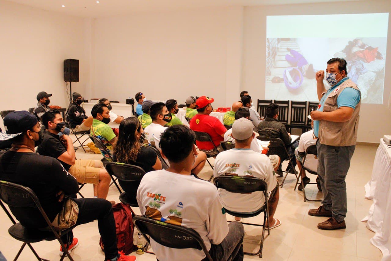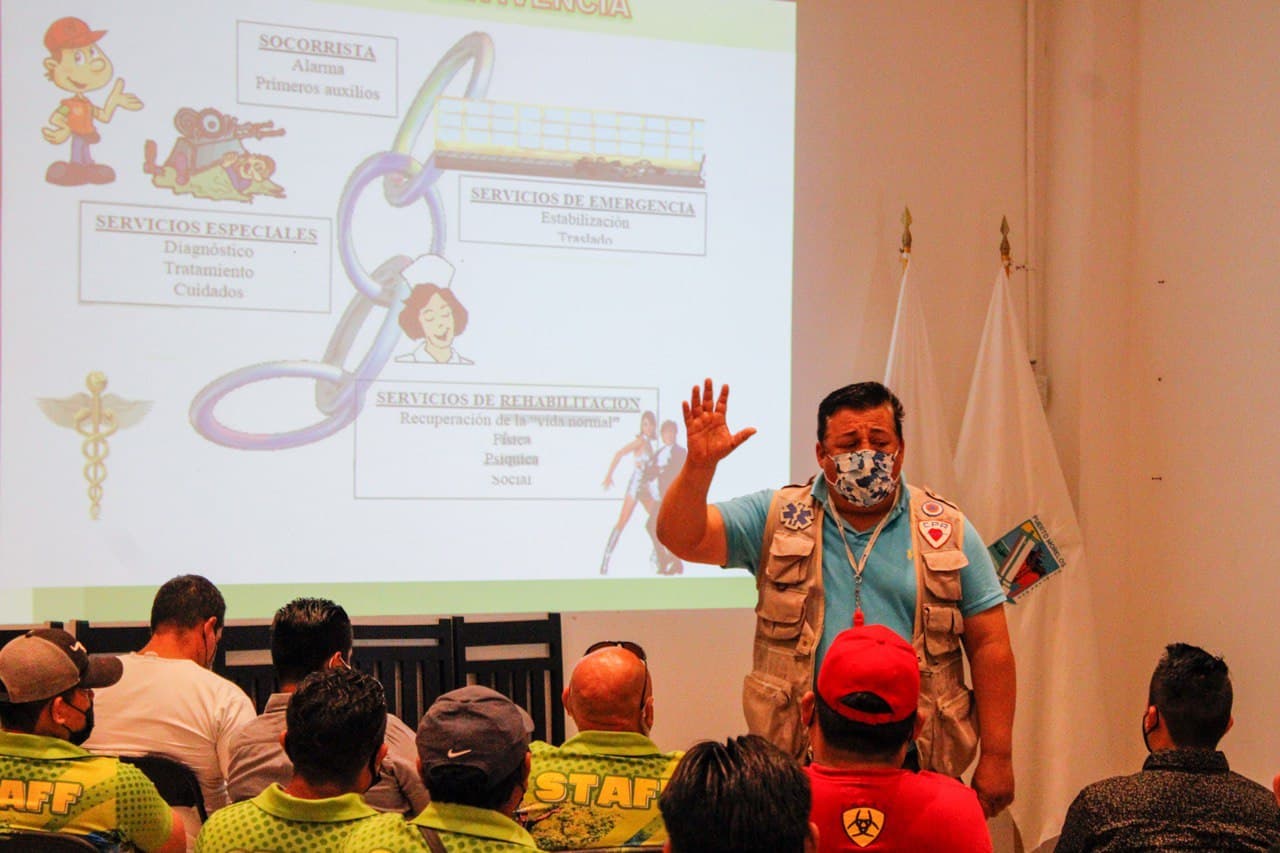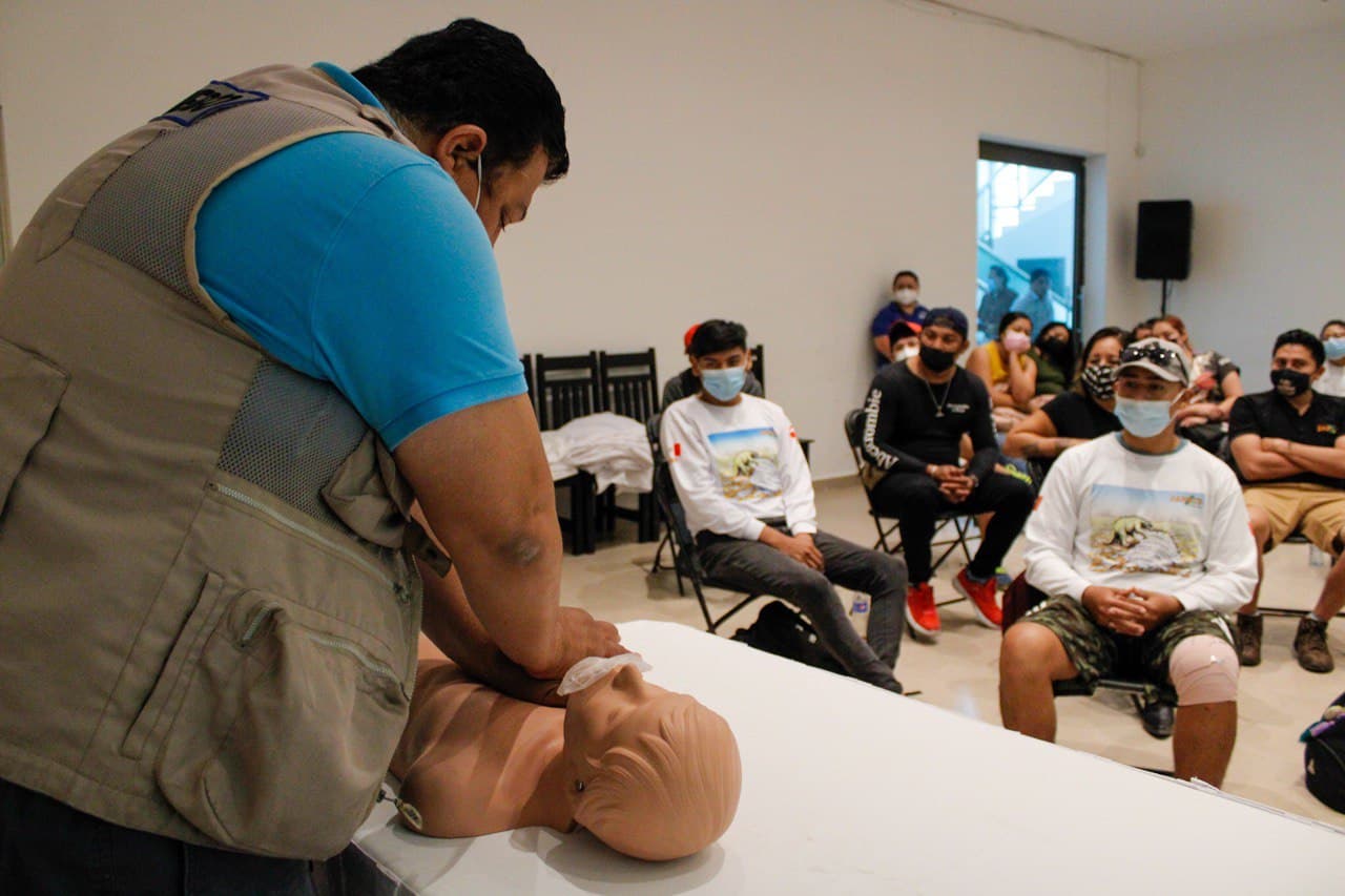 PUERTO MORELOS.- Con el objetivo de brindar las herramientas necesarias para actuar en caso de alguna emergencia, en la que esté en riesgo la salud y la vida de alguna persona, se impartió el curso de capacitación de primeros auxilios a prestadores de servicios turísticos y personal de pequeñas y medianas empresas del municipio.