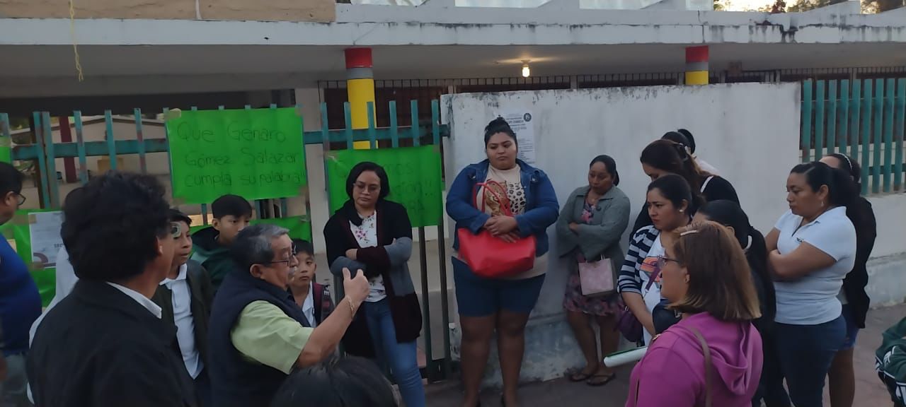 En un intento de dar solución al problema, las autoridades educativas como el director del plantel, José Gonzalo Osorio, el supervisor escolar de la zona escolar 014, Manuel Jesús Pat Caamal y el Jefe de sector, Candelario Pérez y Manrique estuvieron dialogando con los padres de familia.
