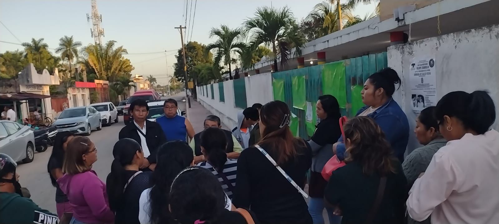 Los padres de familia se manifestaron ante las autoridades educativas antes del inicio de labores escolares de esta mañana en el plantel educativo ubicado en el centro de Felipe Carrillo Puerto.