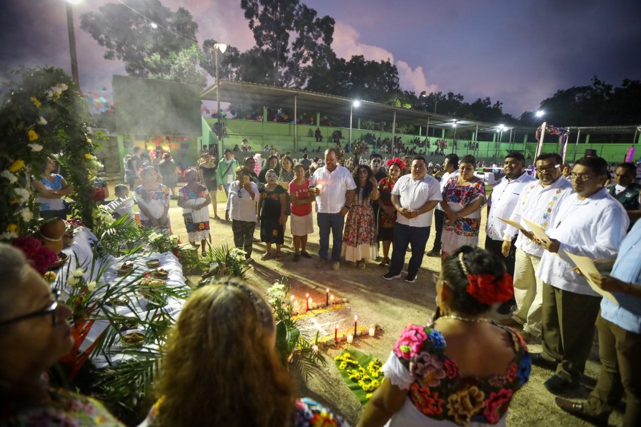 La población y autoridades, encabezadas por el secretario general del Ayuntamiento, José de Jesús Espinosa Payán, quien llevó la representación de la presidenta municipal Blanca Merari Tziu Muñoz, disfrutaron de bailables, como la tradicional jarana yucateca, interpretada por jóvenes de la población, un desfile de catrinas y un recorrido por los altares que se instalaron en el campo de béisbol.