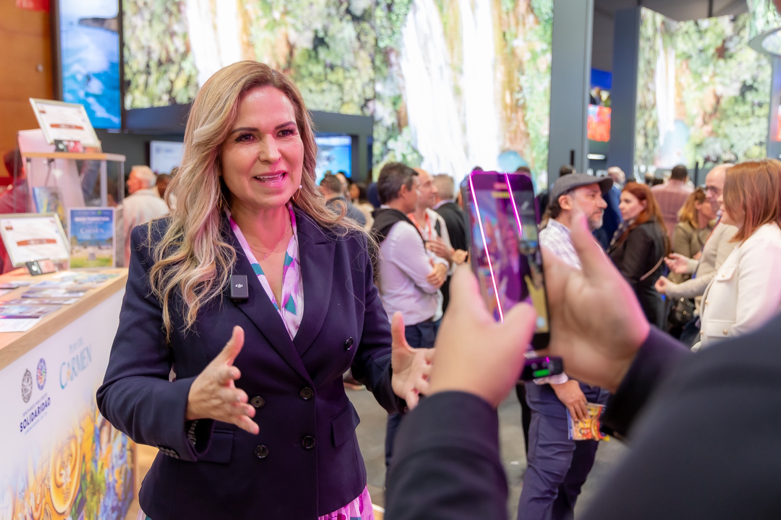 ESPAÑA.- En el segundo día de la Fitur 2024, la presidenta Lili Campos en reunión con inversionistas de las cadenas hoteleras más importantes, reconoció a empresarios por su contribución al desarrollo turístico y económico del municipio. Les compartió los logros de la administración que hacen que el destino turístico esté blindado y con las mejores condiciones para locales y turistas, destacando que el 70% de la inversión proviene de España.