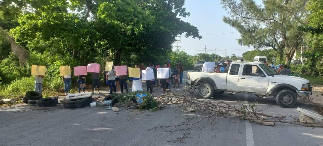 Mahahual.- Alrededor de 50 pobladores de la colonia “Kilómetro 55” iniciaron esta mañana un bloqueo en la carretera Cafetal-Mahahual, como medida de presión y protesta, ante la falta de respuesta de las autoridades de la Comisión Federal de Electricidad (CFE) ante las irregularidades que se han presentado en el servicio de energía eléctrica en los últimos días.