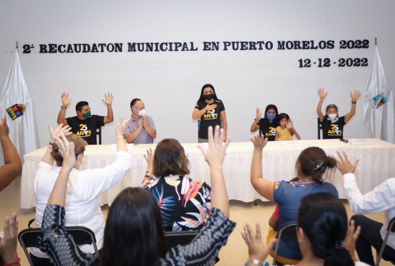 Puerto Morelos, Quintana Roo.— Fortalecer la inclusión y la coordinación entre sociedad y gobierno, para ayudar a los grupos vulnerables es el reto de mi administración y tendría que ser el reto de todos como seres humanos, comprometidos con las causas justas, dijo la presidenta municipal Blanca Merari Tziu Muñoz al poner en marcha el Segundo Recaudatón Puerto Morelos 2022, en la Sala de Cabildo “José María Morelos y Pavón” del Palacio Municipal.