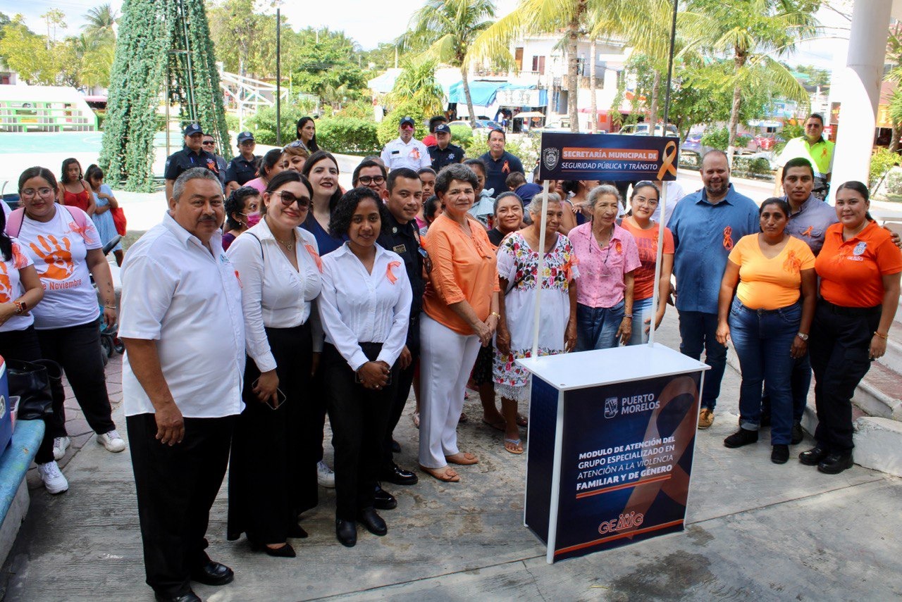 Puerto Morelos.- El gobierno de Puerto Morelos presentó hoy el módulo móvil para la atención a víctimas de violencia familiar y/o por razón de género, el cual se instalará periódicamente en diversos puntos de la cabecera municipal y las comunidades de Leona Vicario, Central Vallarta y Delirios.