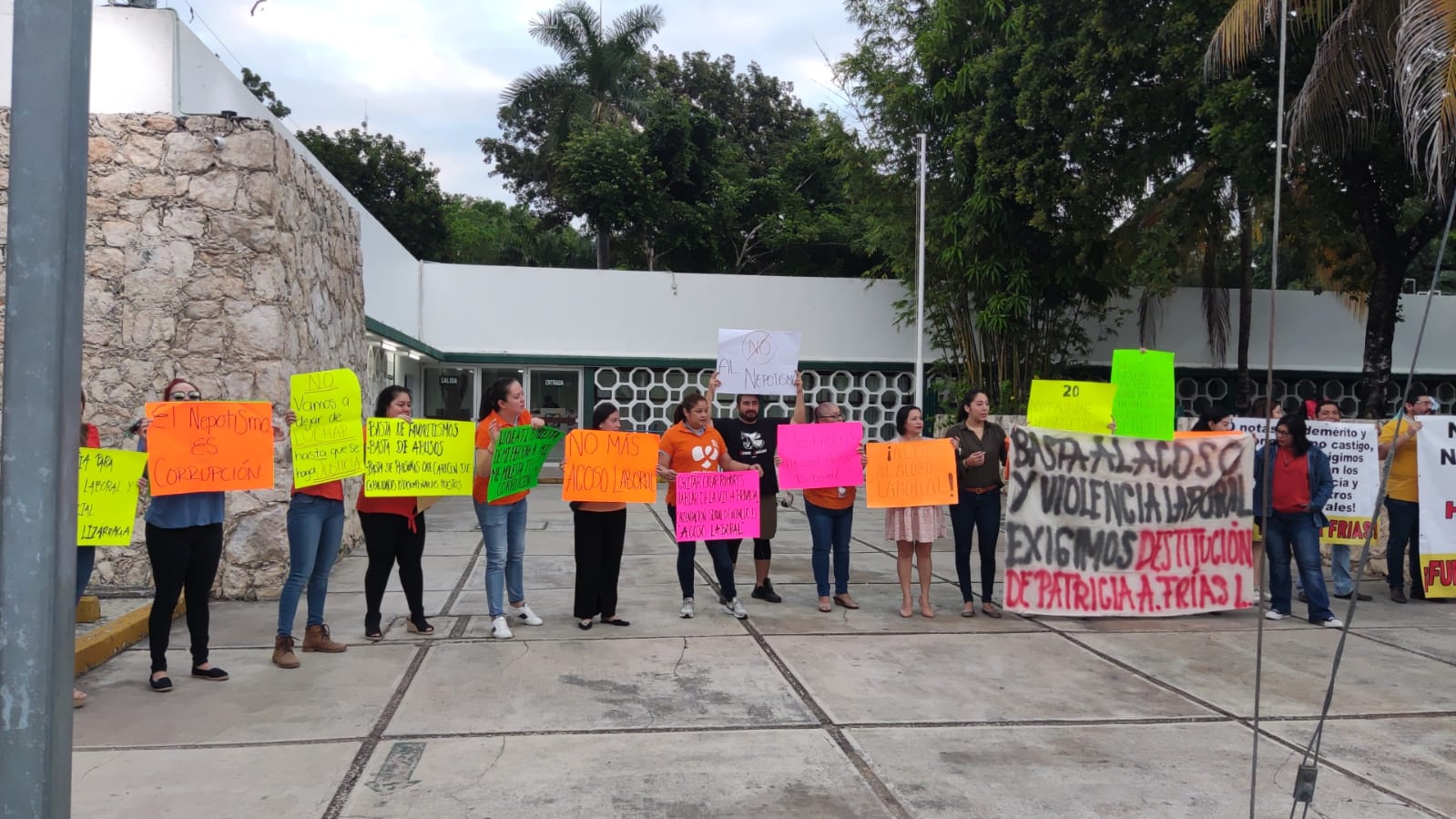 CHETUMAL.- Por segunda ocasión, trabajadores del Instituto Mexicano del Seguro Social (IMSS), en Chetumal, protestaron esta mañana, para exigir la destitución de Patricia Frías Lizárraga, jefa de Servicios de Desarrollo de Personal, a quien se le adjudicaron 20 notas de demérito, equivalentes a una sanción económica, tras ser denunciada por nepotismo y acoso laboral.