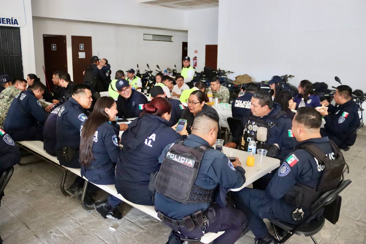 PUERTO MORELOS.- En Puerto Morelos estamos comprometidos con garantizar la paz y tranquilidad a las familias, por ello seguiremos trabajando de la mano con el Estado y la Federación para cumplir ese objetivo, señaló la alcaldesa Blanca Merari Tziu Muñoz, en el marco de un desayuno con elementos de la Secretaría municipal de Seguridad Pública y Tránsito, con motivo de las fiestas decembrinas.