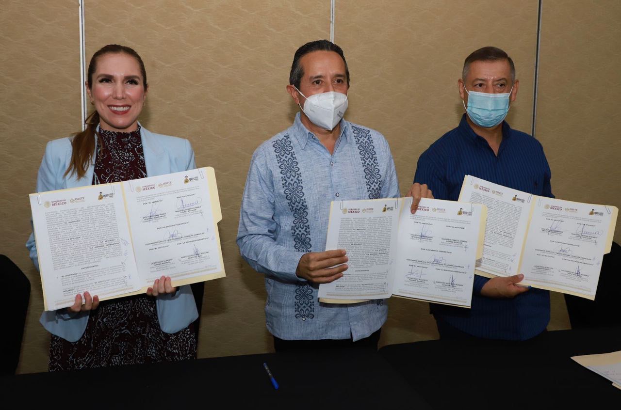 ISLA MUJERES. – Mediante la firma de Convenio de Reconocimiento de Adeudo y Forma de Pago entre el Ayuntamiento de Isla Mujeres, el Instituto de Seguridad y Servicios Sociales para los Trabajadores del Estado (ISSSTE) y el Gobierno del Estado, se restituyen los derechos laborales de las y los trabajadores del Ayuntamiento.