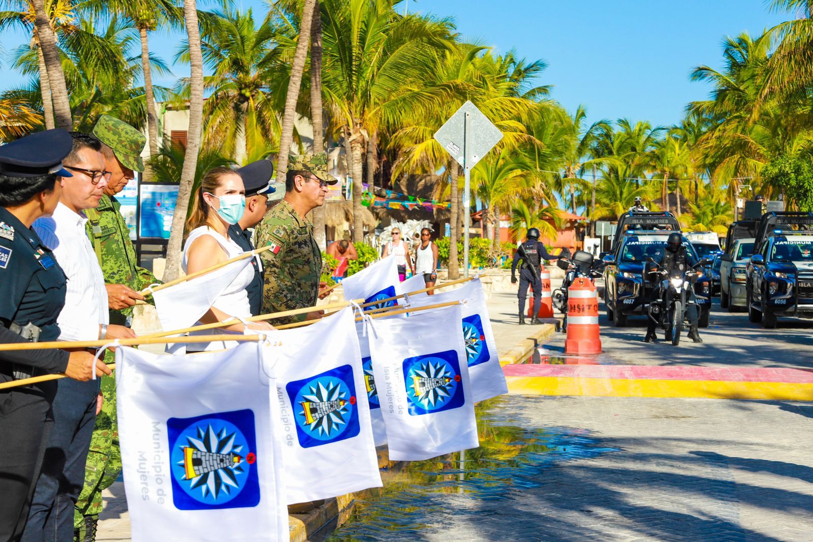 ISLA MUJERES  Para reforzar la seguridad de las familias isleñas y de los turistas que visitan el destino y mantener el orden y la tranquilidad en el municipio durante esta temporada vacacional, la presidente municipal, Atenea Gómez Ricalde, acompañada de autoridades de los tres órdenes de Gobierno, dio el Banderazo para el Fortalecimiento de la Seguridad en Isla Mujeres.