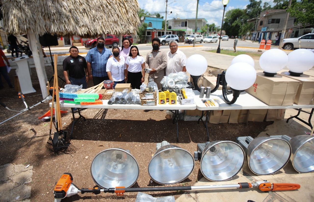 PUERTO MORELOS. La presidenta municipal, Blanca Merari Tziu Muñoz, entregó equipo y herramientas al personal de la Dirección de Servicios Públicos de Leona Vicario, con el objetivo de reforzar la atención a la ciudadanía y con ello brindar espacios limpios y en buenas condiciones.