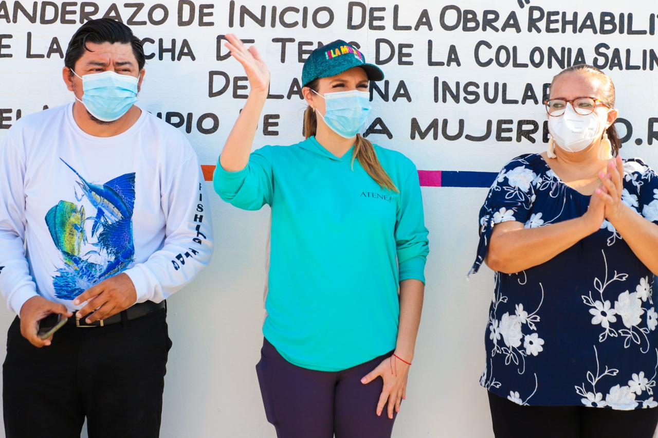 ISLA MUJERES. Con la finalidad de brindar espacios públicos dignos y seguros para la práctica del deporte y la sana convivencia familiar de las y los isleños, la presidente municipal de Isla Mujeres, Atenea Gómez Ricalde, dio el banderazo de la obra de rehabilitación de la cancha de tenis de la colonia Salina Chica.