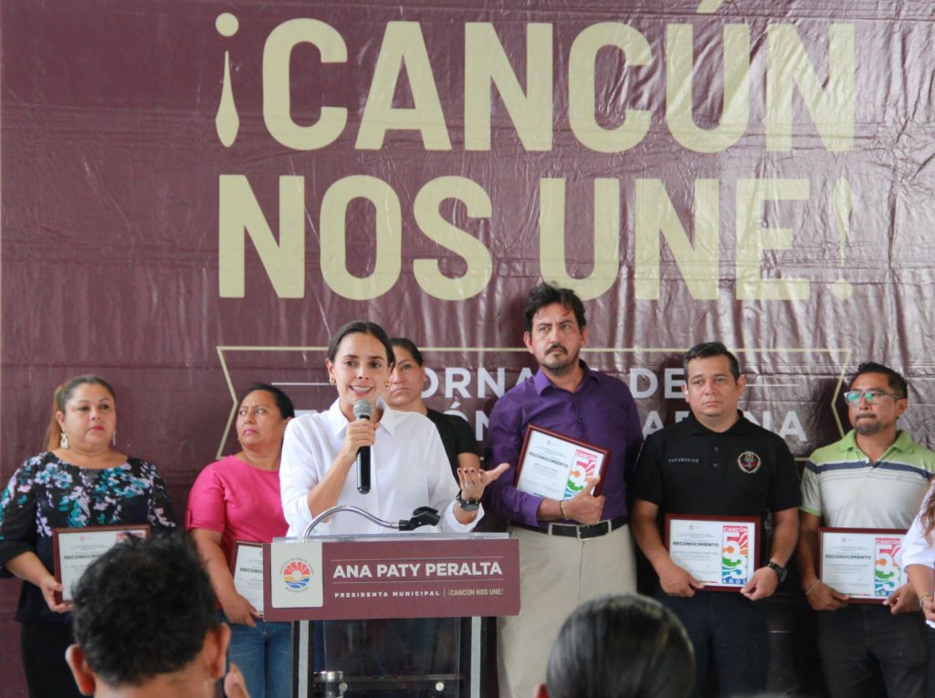 Cancún.- De continuidad con los festejos del 53 Aniversario de Cancún, la Presidenta Municipal Ana Paty Peralta, entregó reconocimientos a 46 ciudadanos que forman parte de los primeros registrados en la ciudad desde 1975, de acuerdo a la convocatoria por el Registro Civil y como complemento a los que ya recibieron su distinción en la Séptima Sesión Solemne de Cabildo el pasado 20 de abril.