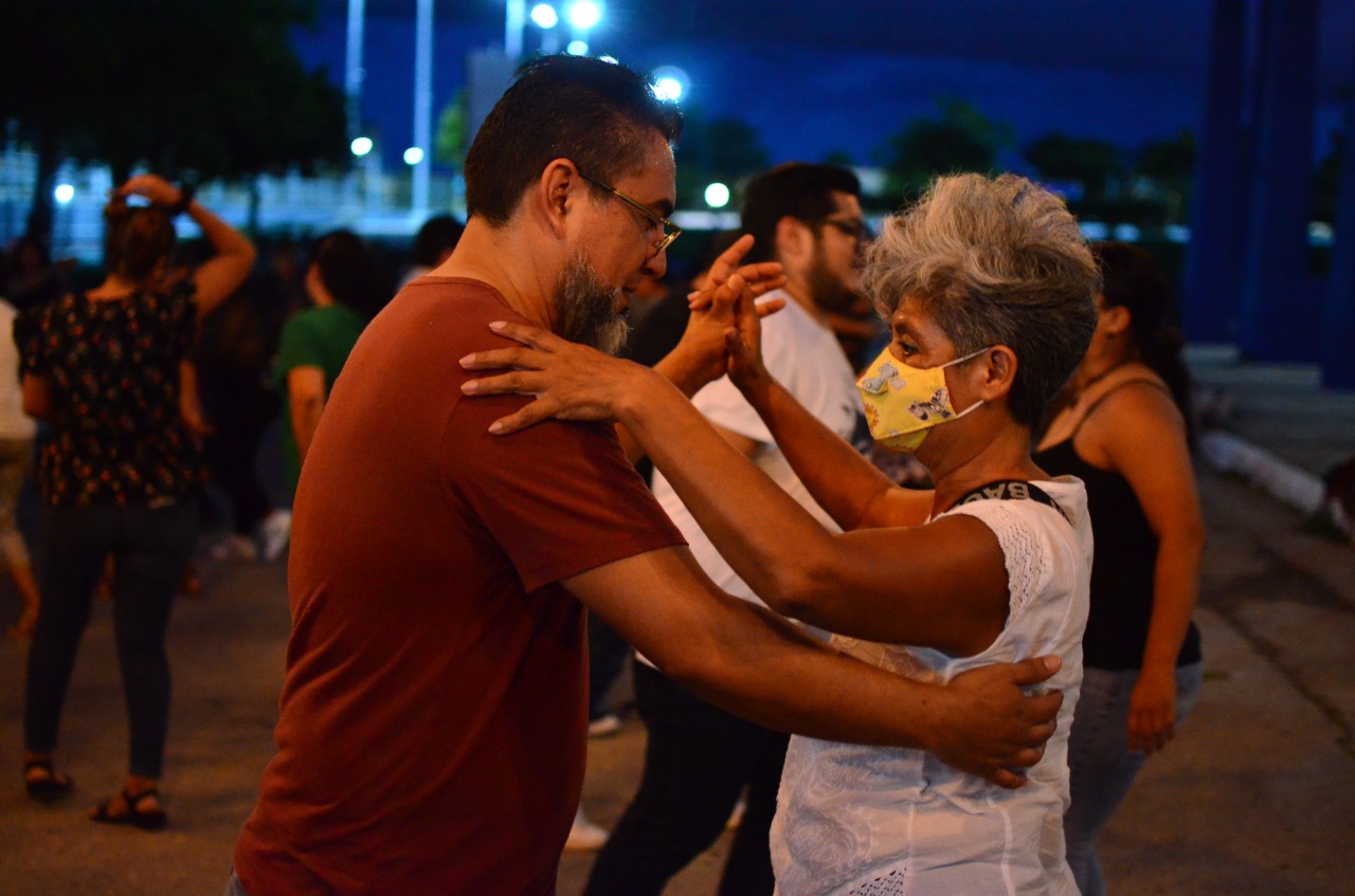 Decenas de parejas participaron en la clase abierta y gratuita a partir de las siete de la noche a cargo de los profesores del programa en mención, que se ofrecen en los domos deportivos y parques de Playa del Carmen y Puerto Aventuras.
