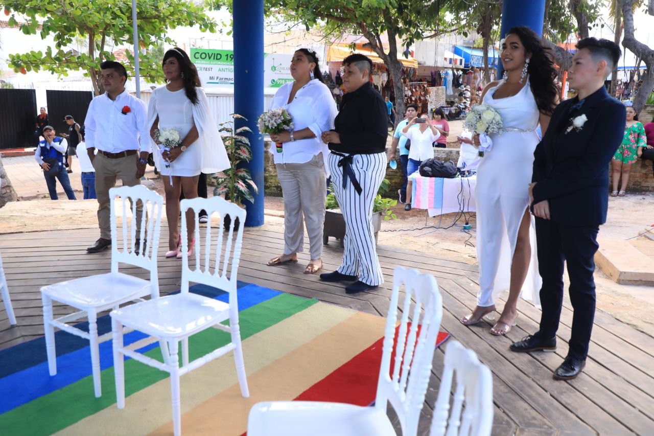 La celebración organizada por la Unidad de Diversidad Sexual, tuvo lugar en el quiosco del parque Fundadores, teniendo como fondo el portal maya y el mar Caribe, lugar donde se congregaron familiares y amigos de los contrayentes, parejas igualitarias quienes formalizaron su relación ante la jueza, oficial 06, María de la Cruz.