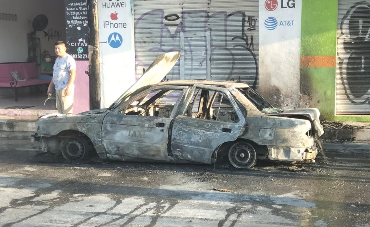 Un taxi del sindicato “Andrés Quintana Roo” quedó completamente consumido por las llamas, presuntamente por un corto circuito, en la supermanzana 220.