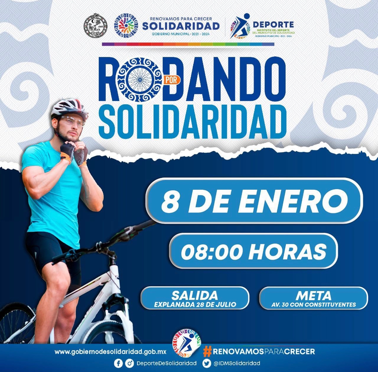 Playa del Carmen.- A fin de promover la activación física de las y los solidarenses con el uso de la bicicleta, patines, patinetas, a través del Instituto Municipal del Deporte (IDM), el gobierno de Lili Campos reactiva el programa “Rodando por Solidaridad”, cuya primera edición de este año será el domingo 8 de enero.