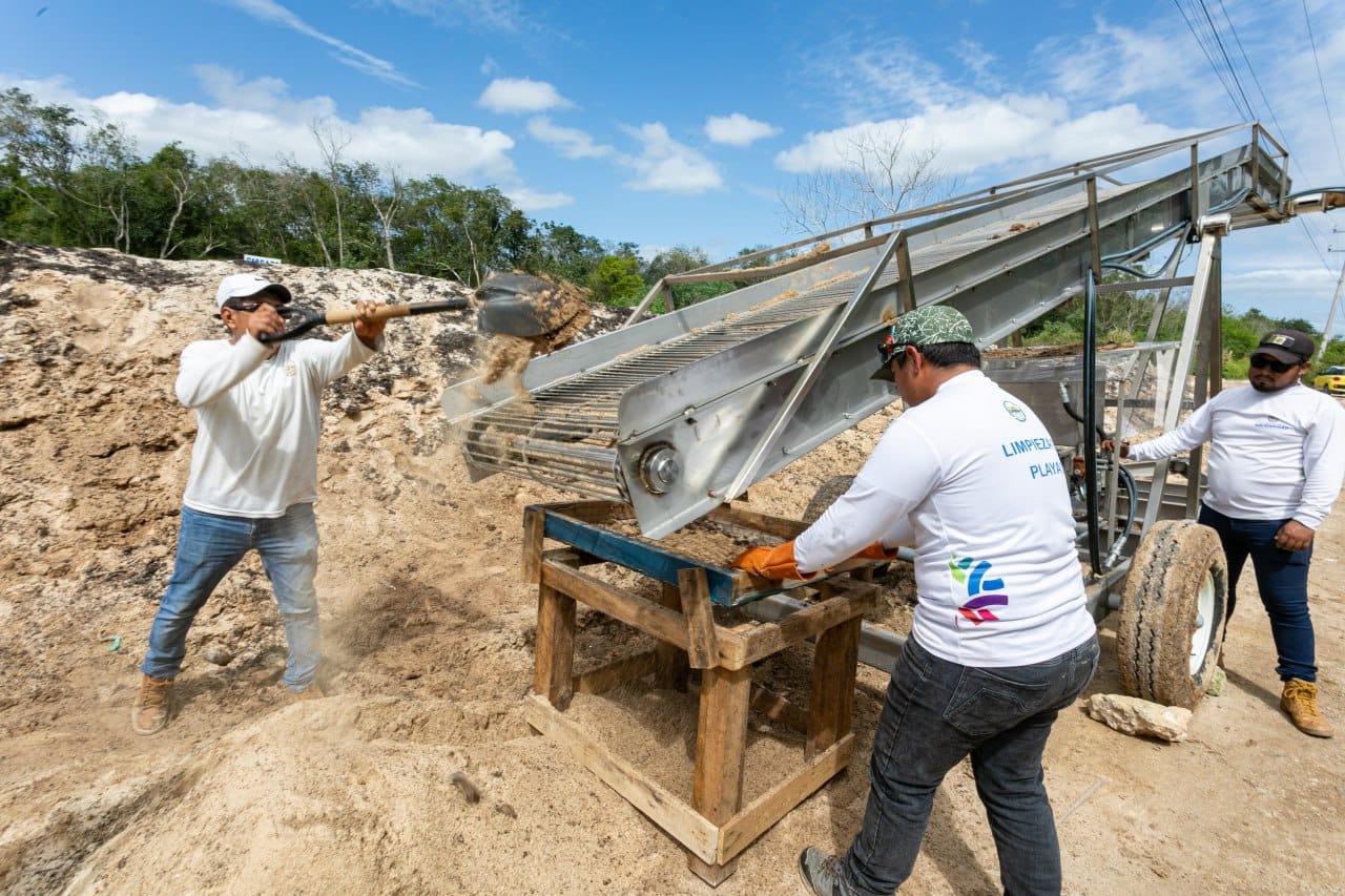 Aclaró que para la recuperación de arena contenida en el sargazo, la planta acuática fue trasladada a terrenos al poniente de la ciudad, posterior al secado y deshidratación natural se ejecutaron distintas técnicas de recuperación y limpieza de la arena, como es el cernido por etapas, a través de bandas, rejillas, entre otros procedimientos.