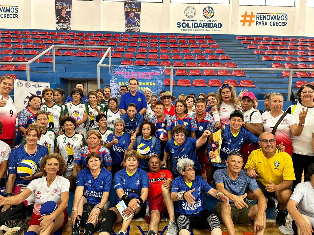 Playa del Carmen.- Los equipos de Toluca en la categoría de 60 años y Puebla en la de 70 años, se proclamaron campeonas de la 5a Copa Nacional Riviera Maya 2023 “Reinas del Cachibol”, que se celebró en las canchas de la colonia Gonzalo Guerrero y el renovado Poliforum, bajo el respaldo del gobierno municipal que encabeza la presidenta Lili Campos.