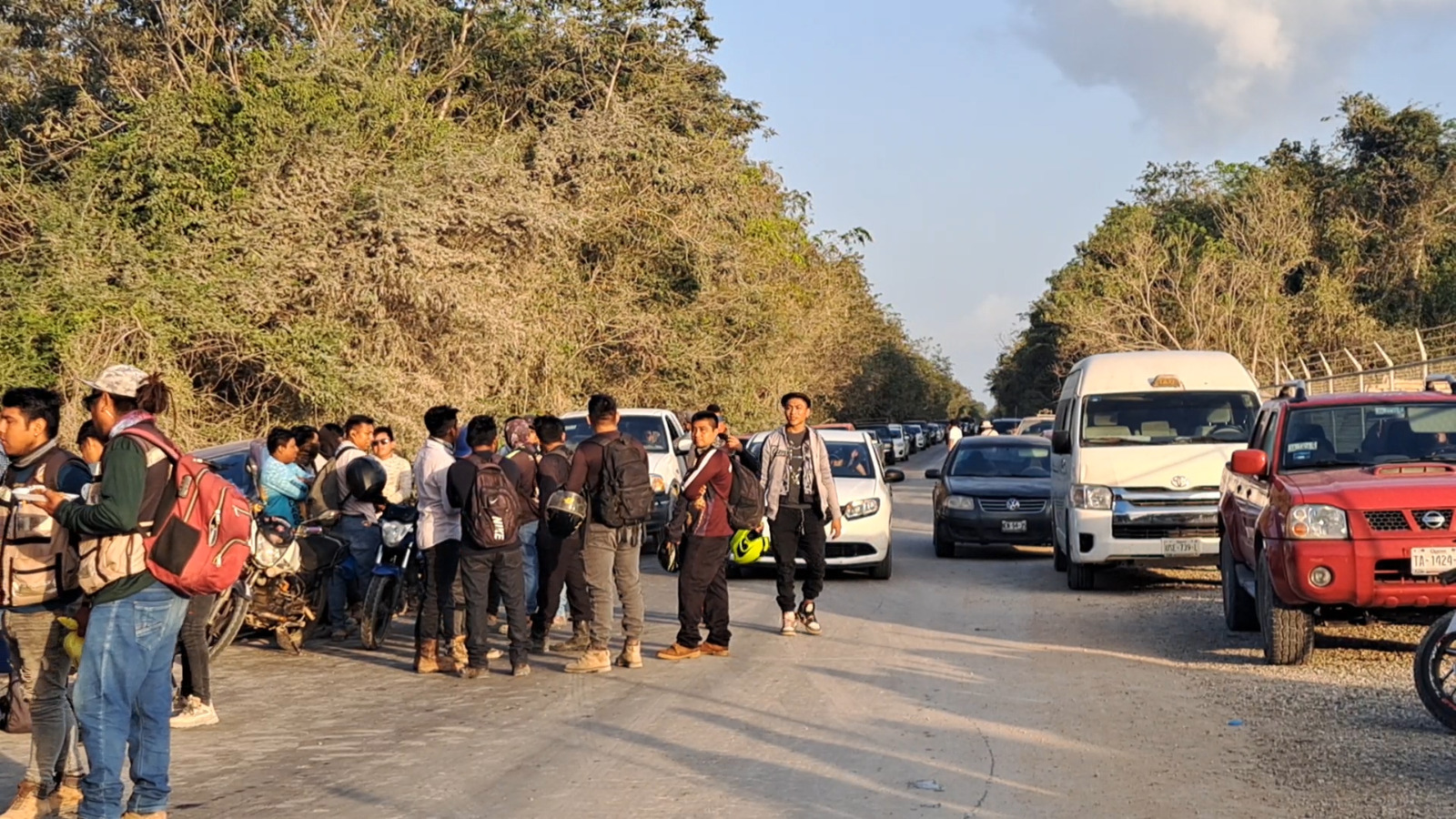 FELIPE CARRILLO PUERTO.- Por segundo día consecutivo, continúa el bloqueo por parte de ejidatarios de Chunyaxché al banco de materiales y las obras del Tren Maya en el camino a Chumpón, en exigencia a la regularización de sus tierras, entre otros compromisos incumplidos por parte de la Federación; esto, mientras una comitiva realiza una reunión con autoridades en Tulum.