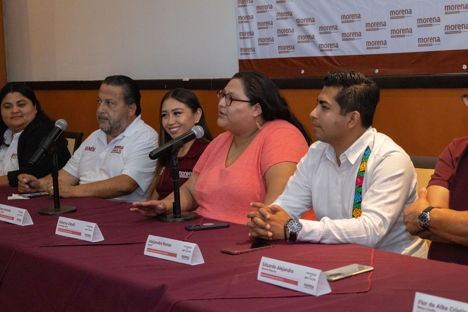 Cancún.- Al asistir a la conferencia de prensa ofrecida por Citlalli Hernández, Secretaria General del Movimiento de Regeneración Nacional (Morena), el presidente del Consejo Político Estatal, Jorge Sanén Cervantes, coincidió que hay algarabía por parte de la militancia para elegir al próximo coordinador nacional de la Defensa de la 4T.