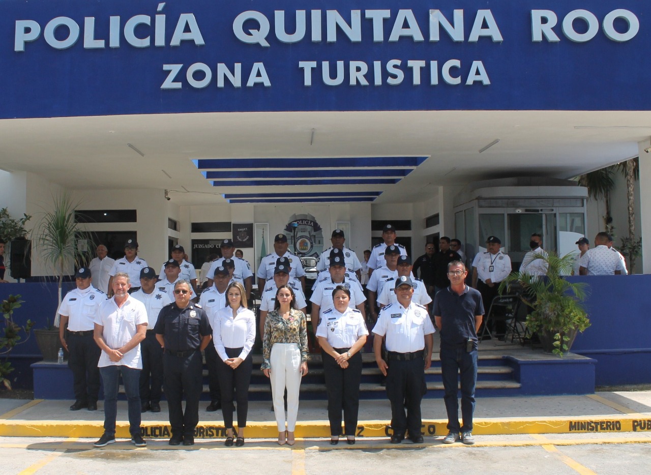 En el acto protocolario se contó con la presencia de la lic. Ana Patricia Peralta De la Peña, Presidenta Municipal de Benito Juárez; el Capitán de Corbeta I.M. José Pablo Mathey Cruz, Encargado del Despacho de la Secretaría Municipal de Seguridad Pública y Tránsito; Lic. Karina Cabrera Rodríguez, Directora de la Policía Turística; así como los directores de las áreas de la Policía Quintana Roo Benito Juárez.