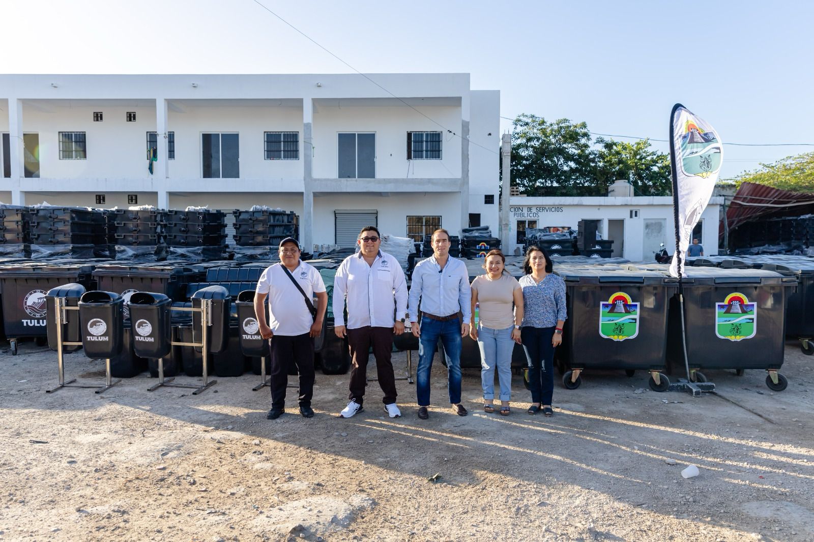 TULUM.- El Presidente Municipal de Tulum, Diego Castañón Trejo, encabezó el acto en que el Ayuntamiento entregó 750 nuevos contenedores para mejorar el sistema de acopio de basura en 14 comunidades de la zona maya y zona de transición, y en la Capital del Caribe Maya.