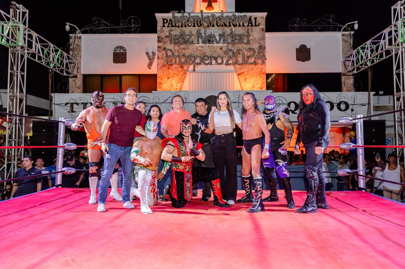 TULUM.- Un verdadero espectáculo de lucha libre de la triple A, se vivió este viernes en la explanada del palacio municipal de Tulum, al enfrentarse ante el cuadrilátero los rudos contra los técnicos en un encuentro que prometió ser duelos de leyendas.