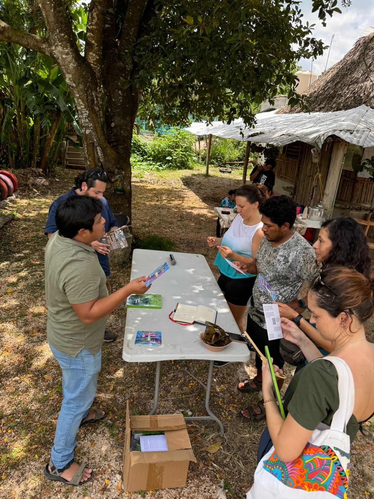 Este fin de semana, Abrahán Collí Tun, Julián Dzul Nah, diseñadores del material bibliográfico presentaron durante el tianguis ecológico de Uyoolche que se realiza los días sábado cada 15 días, a través de una dinámica interactiva con el público presente.