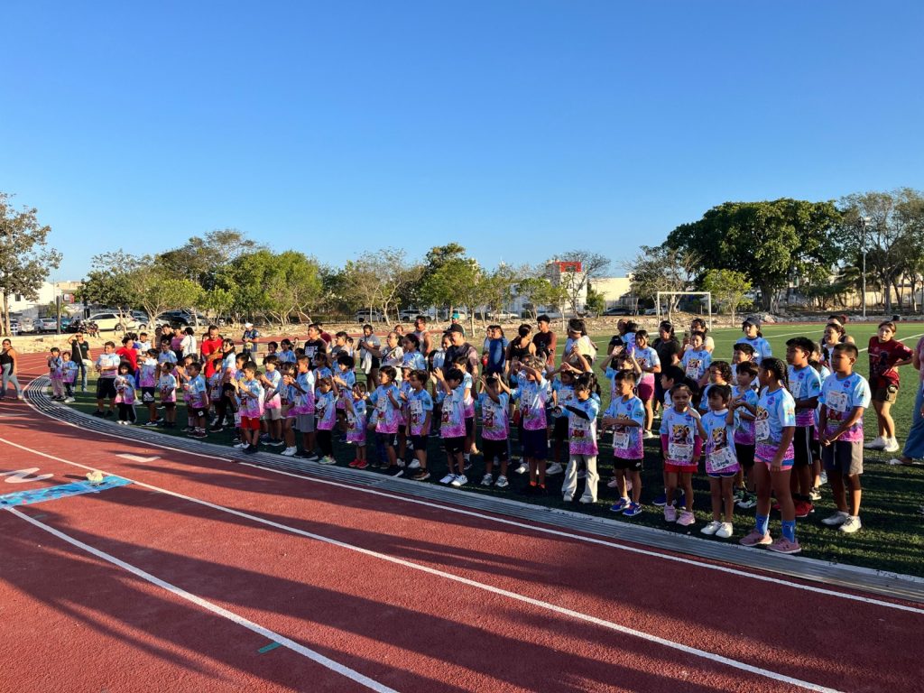 La jornada arrancó con una energética sesión de calentamiento a cargo de la maestra de zumba Verónica Cámara, quien avivó los ánimos de los pequeños atletas. Los primeros en entrar a la pista fueron los niños y niñas de entre 3 a 5 años, quienes corrieron 100 metros con gran entusiasmo y recibieron sus medallas de participación, además de un pequeño obsequio.