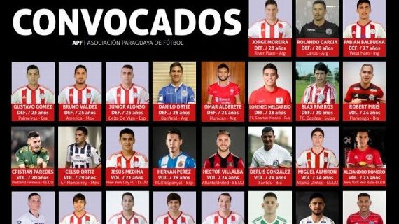Delanteros: Juan Iturbe (Pumas MEX), Oscar Romero (Shanghai Shenhua CHI), Cecilio Domínguez (América MEX), Angel Romero (Corinthians BRA), Federico Santander (Bolonia ITA), Antonio Sanabria (Real Betis ESP), Sergio Díaz (Corinthians BRA), Cristian Colmán (Dallas USA) .