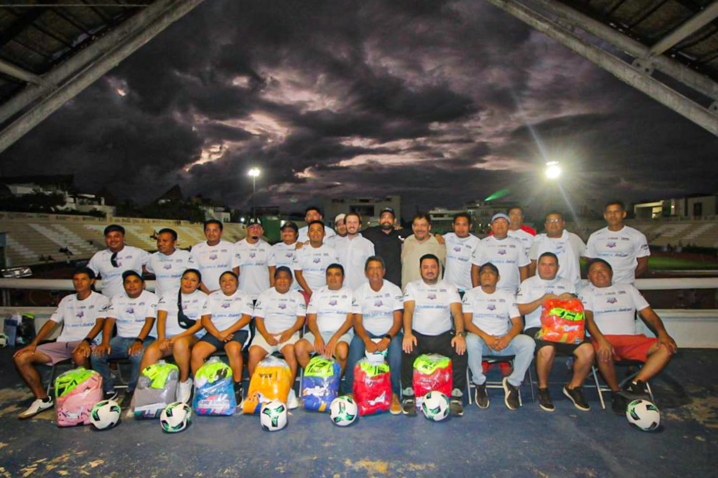 Durante el evento protocolario de entrega de uniformes, estuvieron presentes el profesor Ismael Medina Pulido, presidente de la Asociación de Fútbol del Estado de Quintana Roo; y el director del Instituto del Deporte, Alberto López Castro.