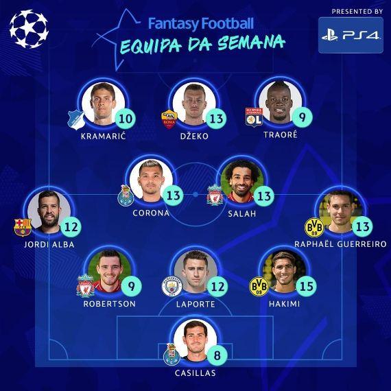 A través de redes sociales, la UEFA difundió una imagen donde aparecieron los mejores futbolistas de la tercera jornada, entre los que destacan Iker Casillas, portero de los Dragones que paró un penal, y Edin Džeko, ariete que clavó doblete con la Roma.