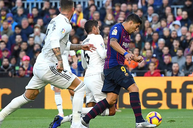 El delantero uruguayo convirtió el penal que significó el 2-0 momentáneo sobre los Merengues en el Camp Nou de Barcelona.
