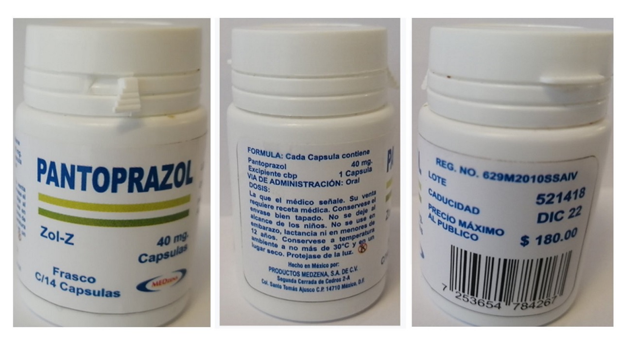 MÉXICO.- La Comisión Federal para la Protección contra Riesgos Sanitarios (Cofepris) determinó que “Zol-Z Pantoprazol” y cualquier otro producto comercializado por la empresa Productos Medzena, S.A. de C.V., es irregular ya que carece de licencia sanitaria.
