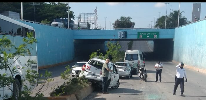 CANCÚN.-Un accidente se reportó la tarde de hoy donde tres vehículos se vieron involucrados.