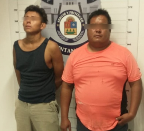 CANCÚN.- Elementos de la Policía Quintana Roo detuvieron dos hombres en la Supermanzana 103, por el delito de robo a comercio.